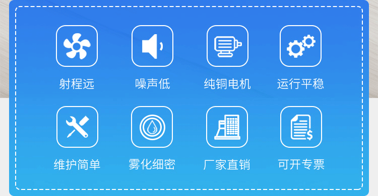 產(chǎn)品特點:固定式霧炮機噴出的霧粒細(xì)小,能快速將粉塵抑制;運行平穩(wěn)、經(jīng)久耐用。