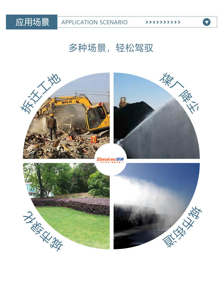 主要用途:用于城市拆遷工地、冶金鋼鐵企業(yè)、采礦區(qū)域、煤化工企業(yè)、水泥廠、火力發(fā)電廠、建筑工地、物料和礦產(chǎn)品露天堆放廠、混凝土處理廠、垃圾堆放場、垃圾焚燒廠、沙廠、干式物料倉庫、露天爆破、重度粉塵區(qū)域。