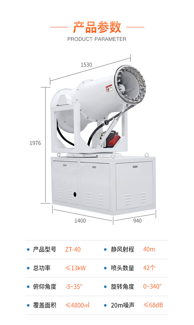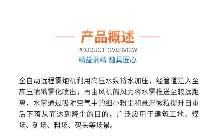 產(chǎn)品特點(diǎn):40米全自動(dòng)霧炮機(jī)運(yùn)行平穩(wěn),支持只能操控,可放置一處實(shí)現(xiàn)全自動(dòng)噴霧,霧化細(xì)密。