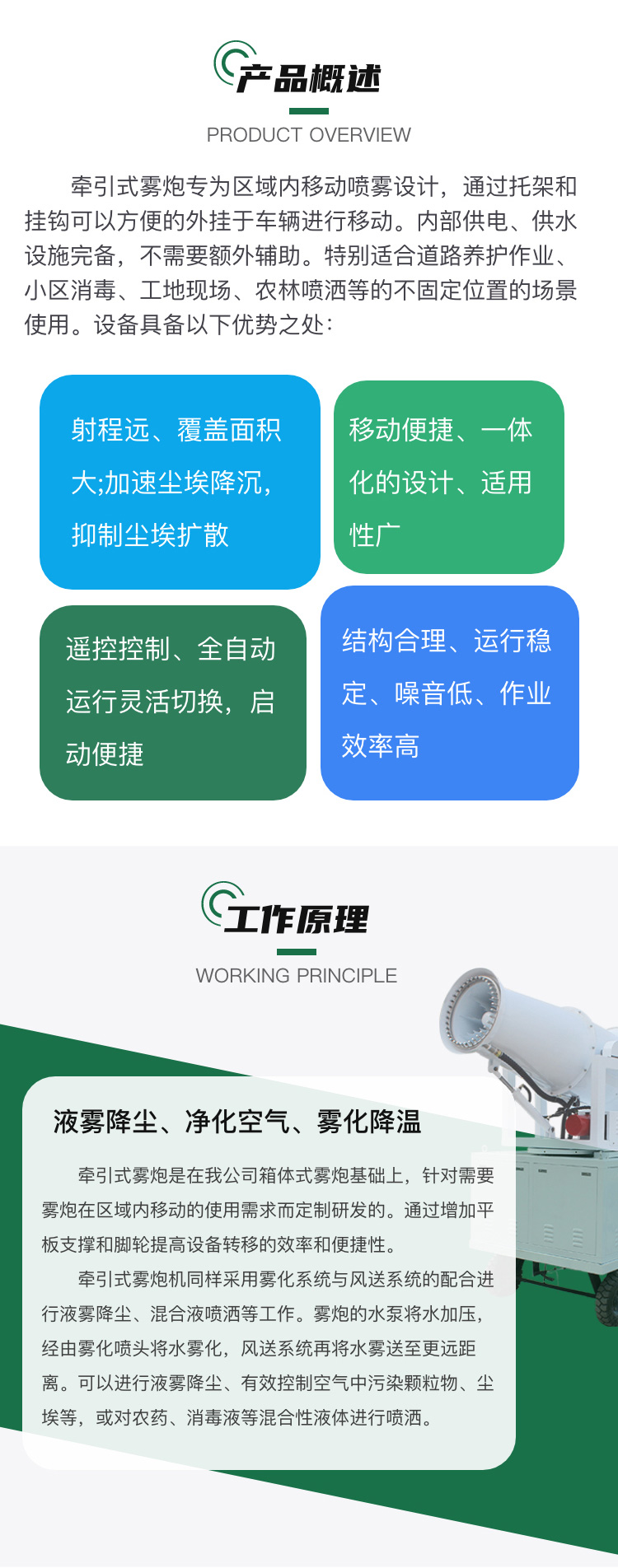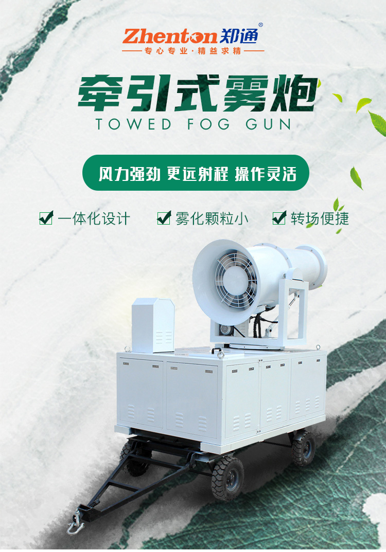 產(chǎn)品特點:60米牽引式箱體霧炮移動方便、射程遠、覆蓋范圍廣,使用安全可靠,遙控和人工控制操作,可隨意控制調節(jié)水平旋轉噴霧角度。