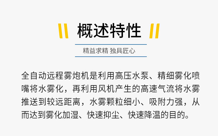 產(chǎn)品特點(diǎn):50米全自動(dòng)遠(yuǎn)程霧炮機(jī)快速降塵、射程遠(yuǎn)、覆蓋范圍廣、可以實(shí)現(xiàn)精量噴霧;工作效率高、噴霧速度快;配套動(dòng)力靈活,可定制化。