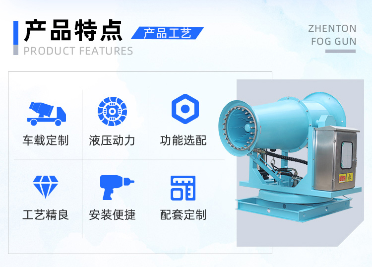 產(chǎn)品特點(diǎn):車載式液壓霧炮機(jī),主要為帶水箱的車載式噴霧車定制化設(shè)計(jì),抑塵效果好,加速塵埃沉降,實(shí)現(xiàn)對空氣的凈化。