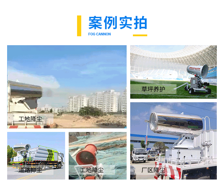 主要用途:建筑垃圾或廢渣廢料機(jī)械作業(yè)局部揚(yáng)塵治理、重型車運(yùn)輸中道路揚(yáng)塵污染治理;飛機(jī)場、高速公路、車站、碼頭、公共場所、運(yùn)動場地、炎熱場地等降塵保濕降溫消毒。