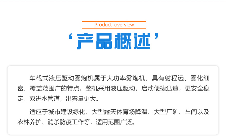 產(chǎn)品特點:120米車載液壓霧炮機屬于大型霧炮設(shè)計,具有風(fēng)送距離遠(yuǎn)、霧化覆蓋更廣泛的特點;整機采用液壓驅(qū)動,啟動便捷迅速,更安全穩(wěn)定。