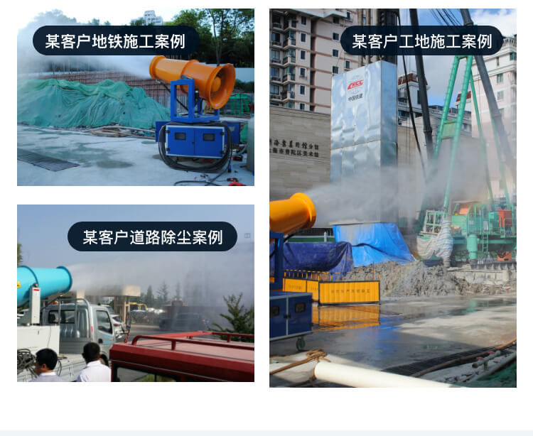 主要用途:用于煤礦場、城市拆遷工地、冶金鋼鐵企業(yè)、采礦區(qū)域、煤化工企業(yè)、水泥廠、火力發(fā)電廠、物料和礦產(chǎn)品露天堆放廠、混凝土處理廠、垃圾堆放場、垃圾焚燒廠、沙廠、干式物料倉庫、露天爆破、重度粉塵區(qū)域。