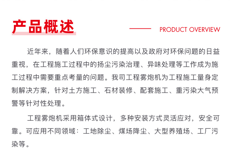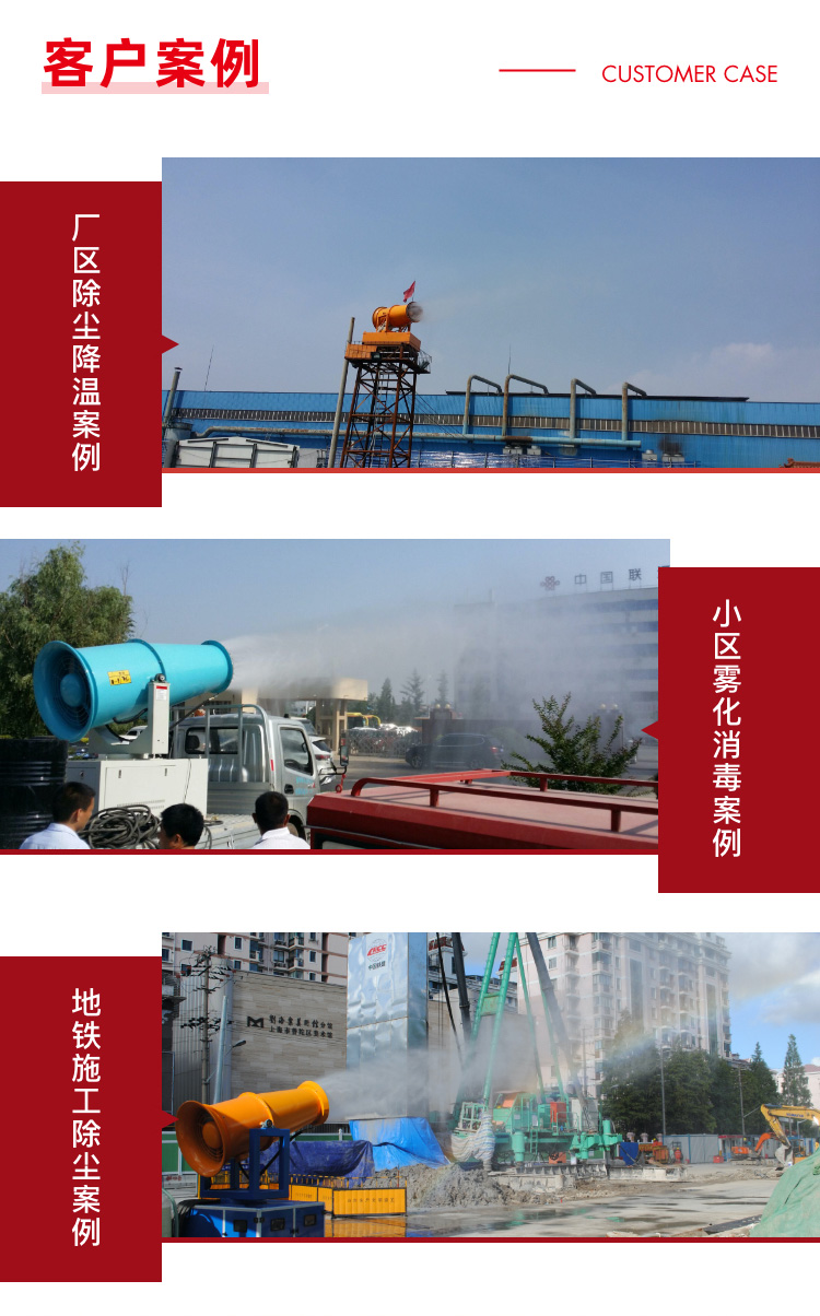 主要用途:適用于城市拆遷工地、冶金鋼鐵企業(yè)、采礦區(qū)域、煤化工企業(yè)、水泥廠、火力發(fā)電廠、建筑工地、物料和礦產(chǎn)品露天堆放廠、混凝土處理廠、垃圾堆放場(chǎng)、垃圾焚燒廠、沙廠、干式物料倉(cāng)庫(kù)、露天爆破、重度粉塵區(qū)域。