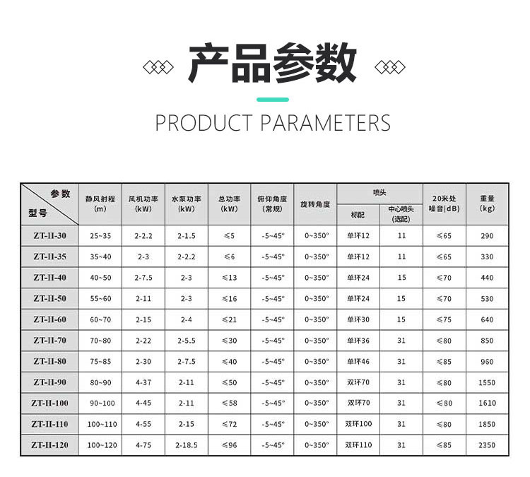 產(chǎn)品特點(diǎn):大仰角霧炮機(jī)采用箱體式結(jié)構(gòu),安裝方便;除塵效果好,覆蓋范圍廣,工作效率高。