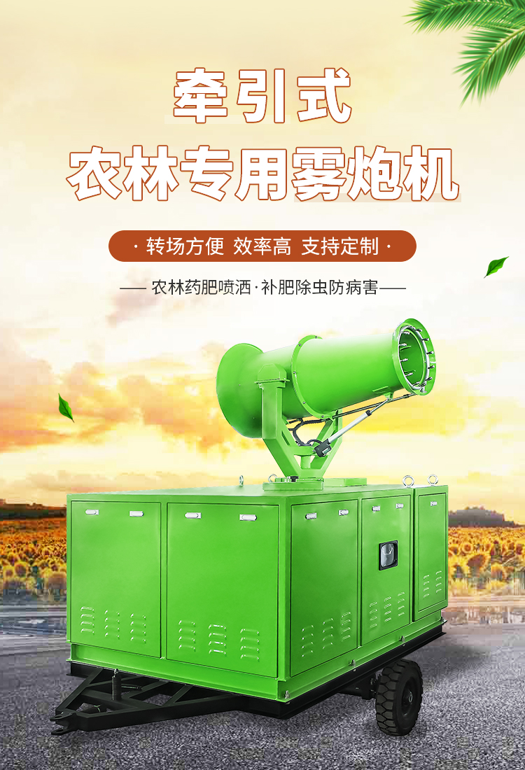 產(chǎn)品特點:牽引式農(nóng)林霧炮機耐腐蝕、防生銹,可移動式設(shè)計,打藥方便,噴灑便捷。