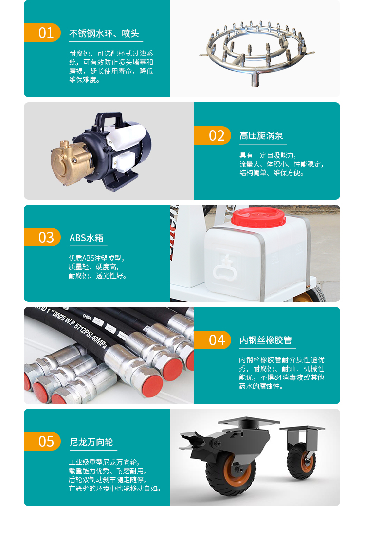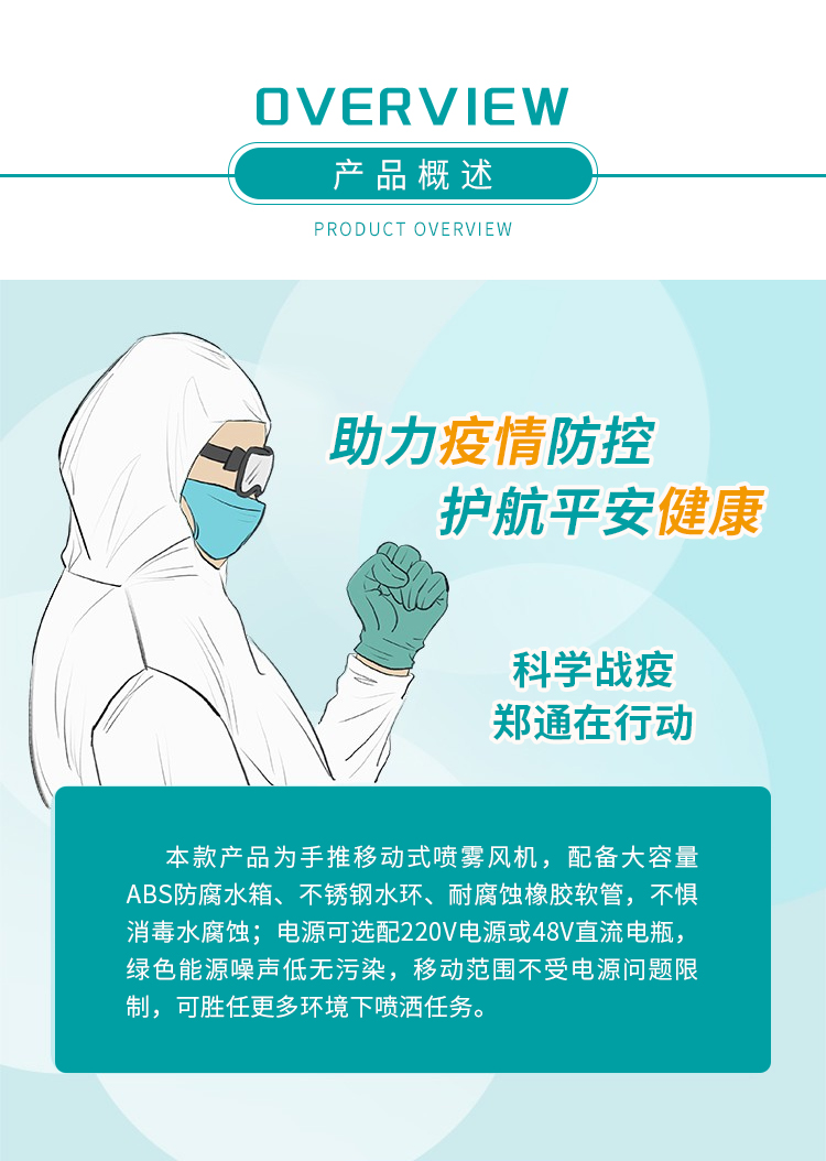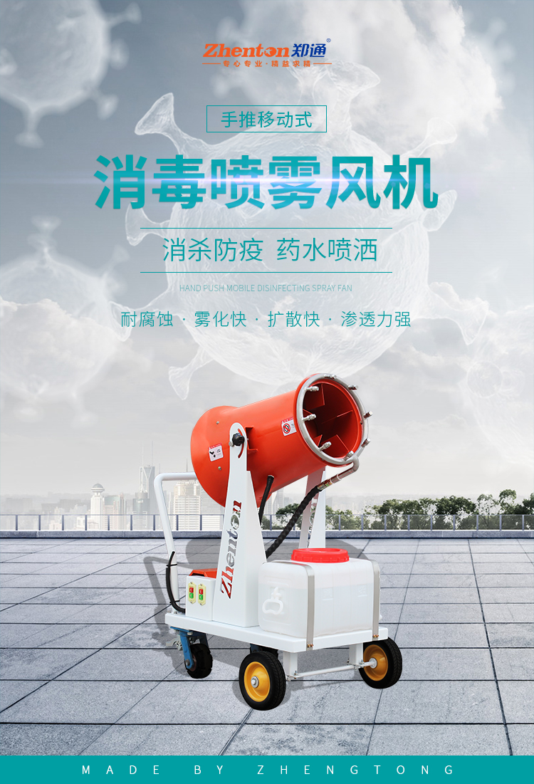 產(chǎn)品特點:防疫消毒霧炮機配備大容量ABS防腐水箱、不銹鋼水環(huán)、耐腐蝕橡膠軟管,不懼消毒水腐蝕;電源可選配220V電源或48V直流電瓶,綠色能源噪聲低無污染,移動范圍不受電源問題限制,可勝任更多環(huán)境下噴灑任務(wù)。