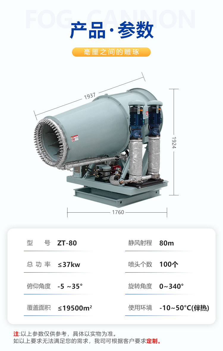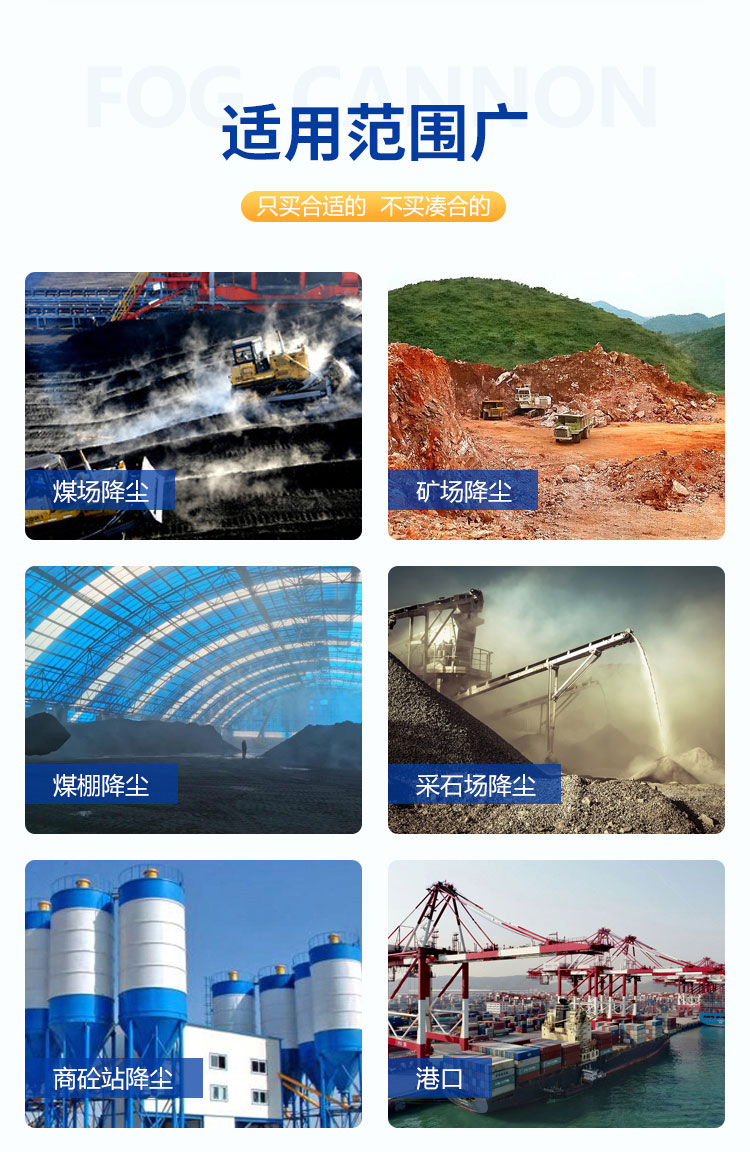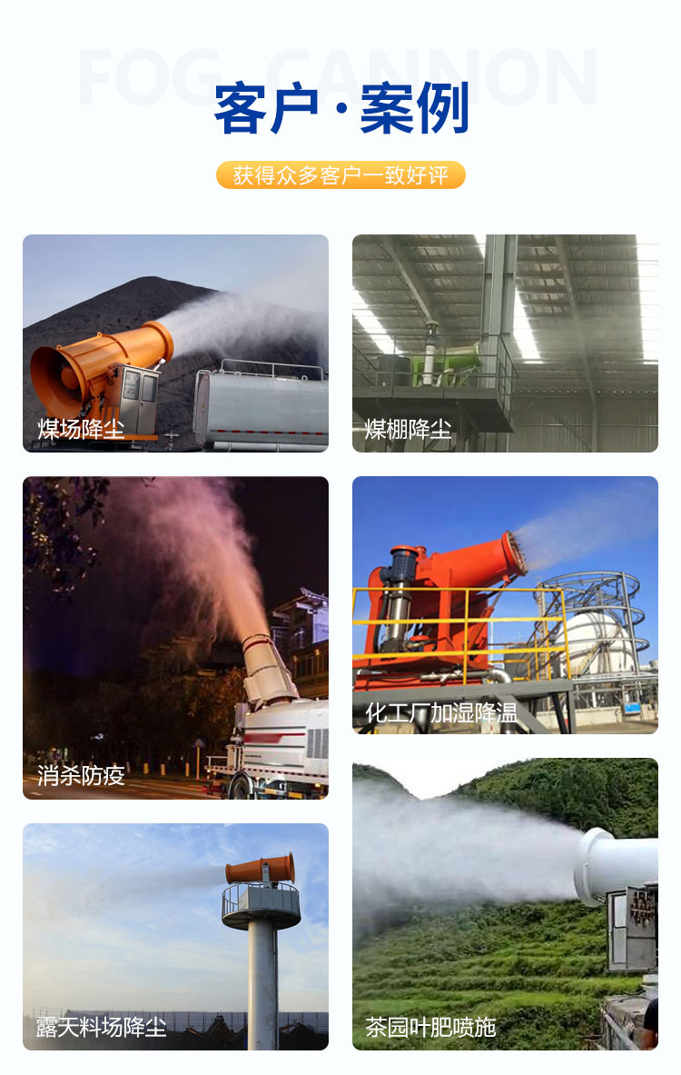 主要用途:用于城市拆遷工地、冶金鋼鐵企業(yè)、采礦區(qū)域、煤化工企業(yè)、水泥廠、火力發(fā)電廠、建筑工地、物料和礦產(chǎn)品露天堆放廠、混凝土處理廠、垃圾堆放場、垃圾焚燒廠、沙廠、干式物料倉庫、露天爆破、重度粉塵區(qū)域。