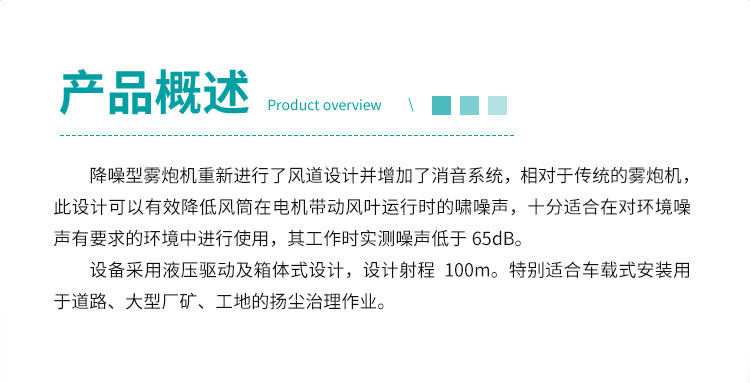 產(chǎn)品特點:工礦行業(yè)抑塵霧炮機(jī)增加了消音系統(tǒng),相對于傳統(tǒng)的霧炮機(jī),此設(shè)計可以有效降低風(fēng)筒在電機(jī)帶動風(fēng)葉運行時的嘯噪聲,十分適合在對環(huán)境噪聲有要求的環(huán)境中進(jìn)行使用,其工作時實測噪聲低于65dB。