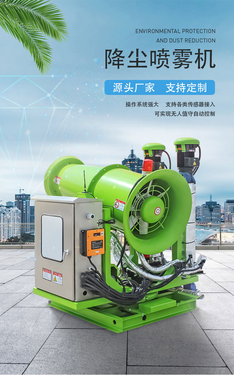 產品特點:雙泵式工地降塵噴霧機采用立式結構,工作穩(wěn)定,自動供水,自動噴霧,自動旋轉,自動俯仰,也可采用定時噴霧,定點噴霧等更智能的操作模式。