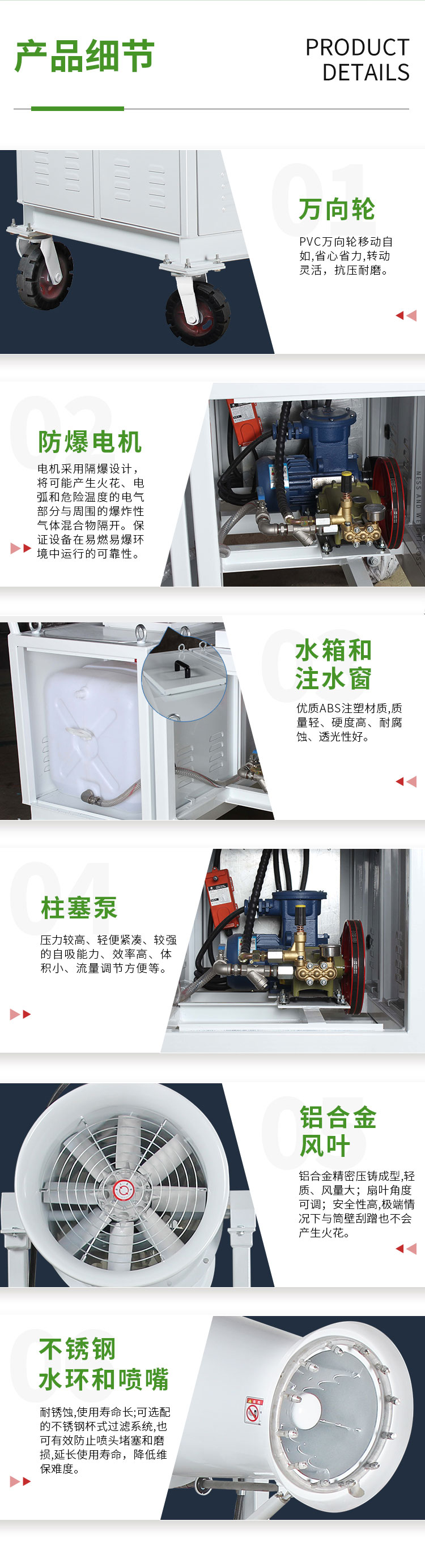 產(chǎn)品特點:30米移動式噴霧風(fēng)機(jī)這款產(chǎn)品具有一鍵啟動功能,能起到快速降塵、降溫的作用;移動便捷,方便維修。