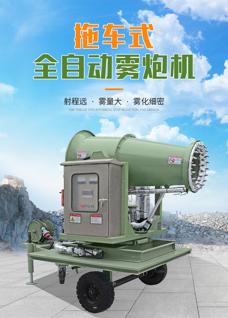 產(chǎn)品特點:拖車式全自動霧炮機射程遠(yuǎn)、覆蓋范圍廣、工作效率高、移動方便靈活;配套動力靈活,使用安全可靠。