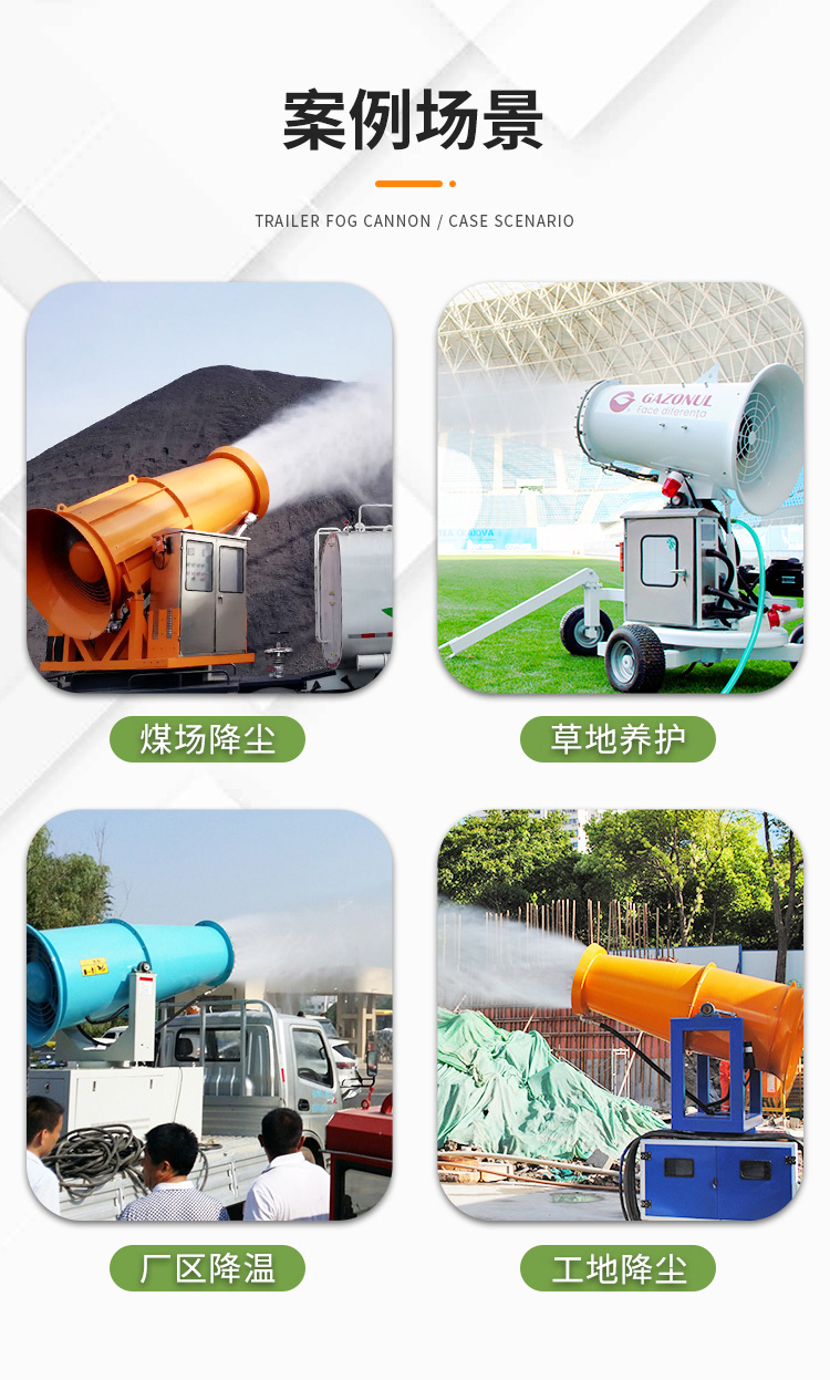 主要用途:用于煤礦場、城市拆遷工地、冶金鋼鐵企業(yè)、采礦區(qū)域、煤化工企業(yè)、水泥廠、火力發(fā)電廠、物料和礦產(chǎn)品露天堆放廠、混凝土處理廠、垃圾堆放場、垃圾焚燒廠、沙廠、干式物料倉庫、露天爆破、重度粉塵區(qū)域。