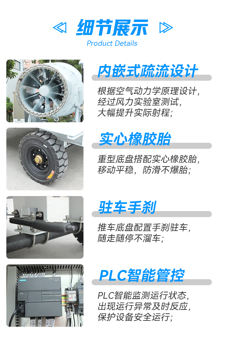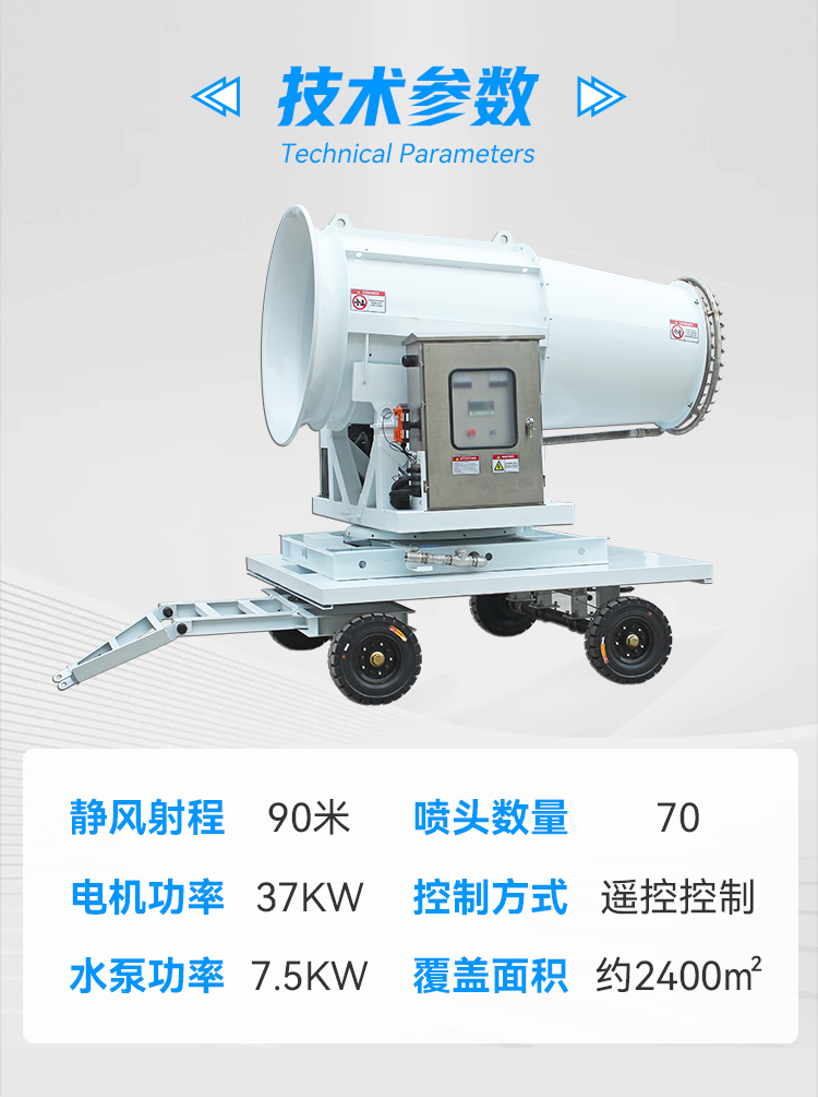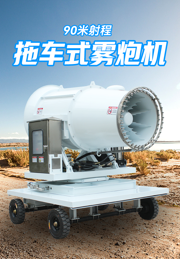 產(chǎn)品特點(diǎn):90米拖車式霧炮機(jī)采用四輪牽引設(shè)計(jì),移動(dòng)性強(qiáng)、動(dòng)力強(qiáng)、射程遠(yuǎn)、覆蓋廣泛、可實(shí)現(xiàn)精量噴霧;工作效能高、噴霧加濕更快,能迅速降溫抑塵;配件驅(qū)動(dòng)可靈活定制,操作便捷,靈活方便。
