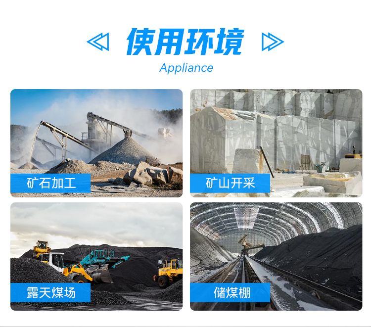 主要用途:可用于煤礦場(chǎng)、城市拆遷工地、冶金鋼鐵企業(yè)、采礦區(qū)域等多種特殊環(huán)境。